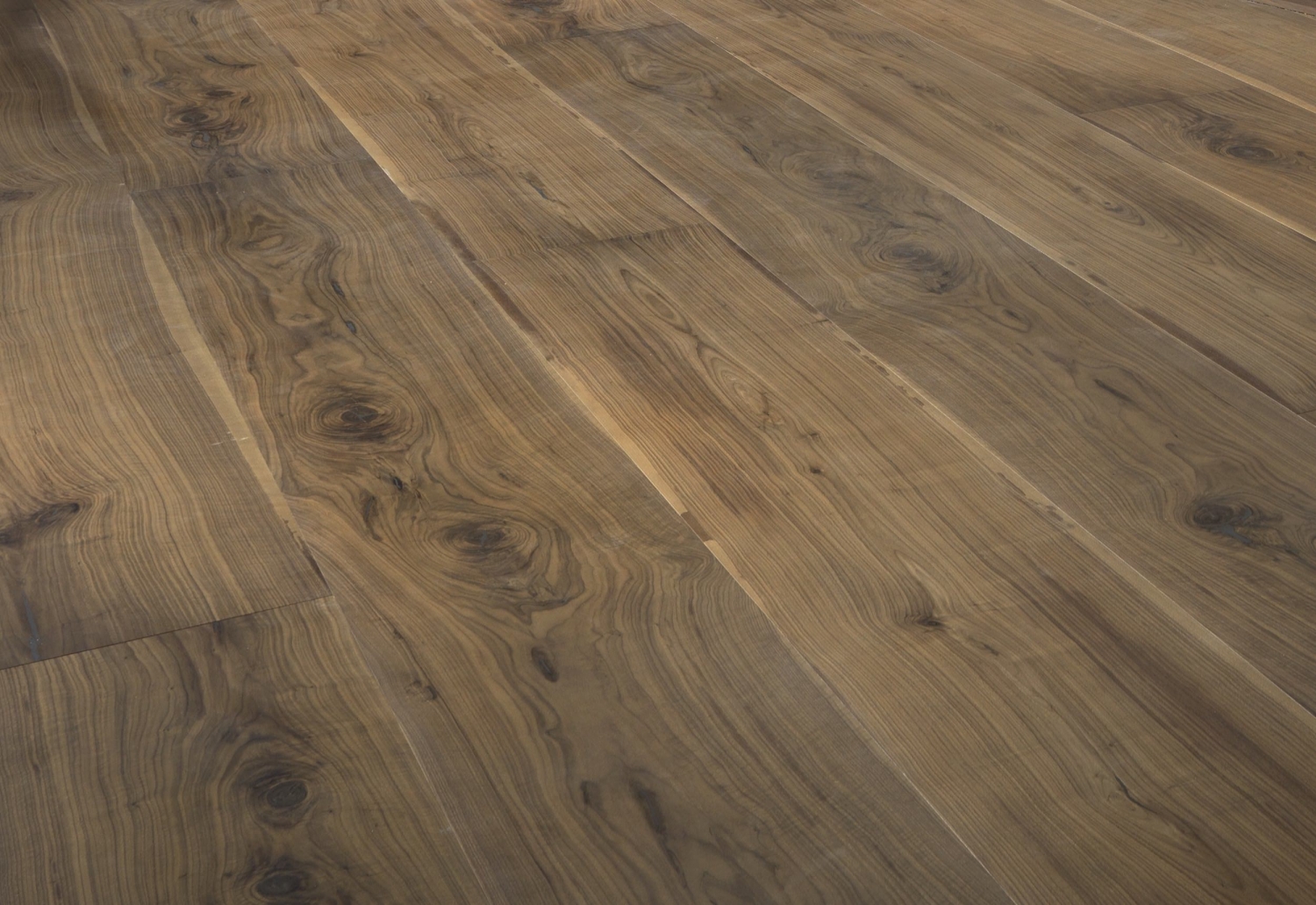 Engineered wood planks Jumbo floor in American Walnut: brushed, stained, varnished.
